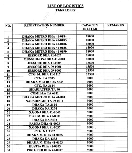3. 15 NOS. OF TANK LORRY WITH CAPACITY OF 18000 LITERS.